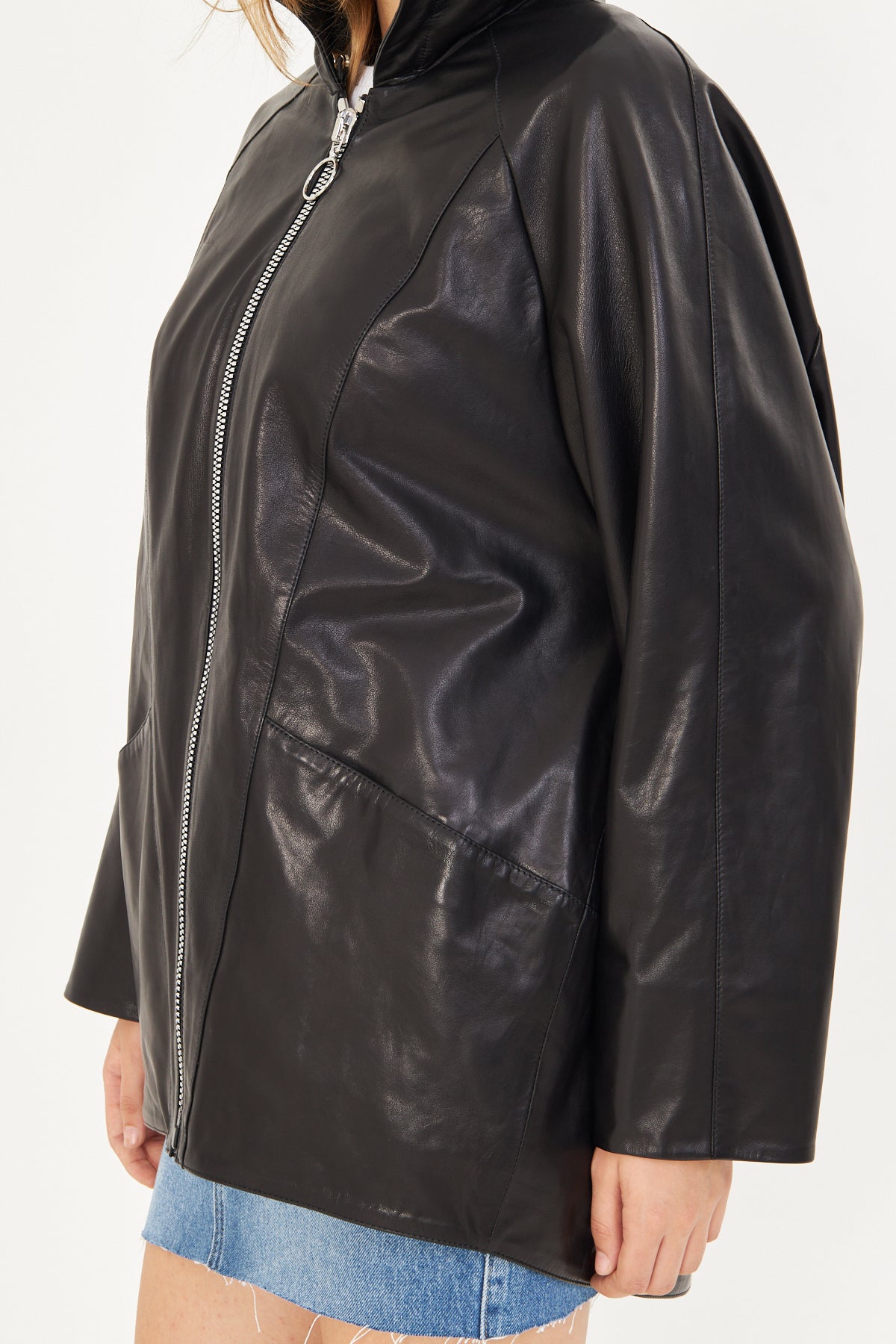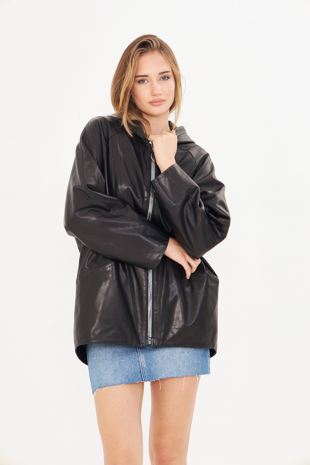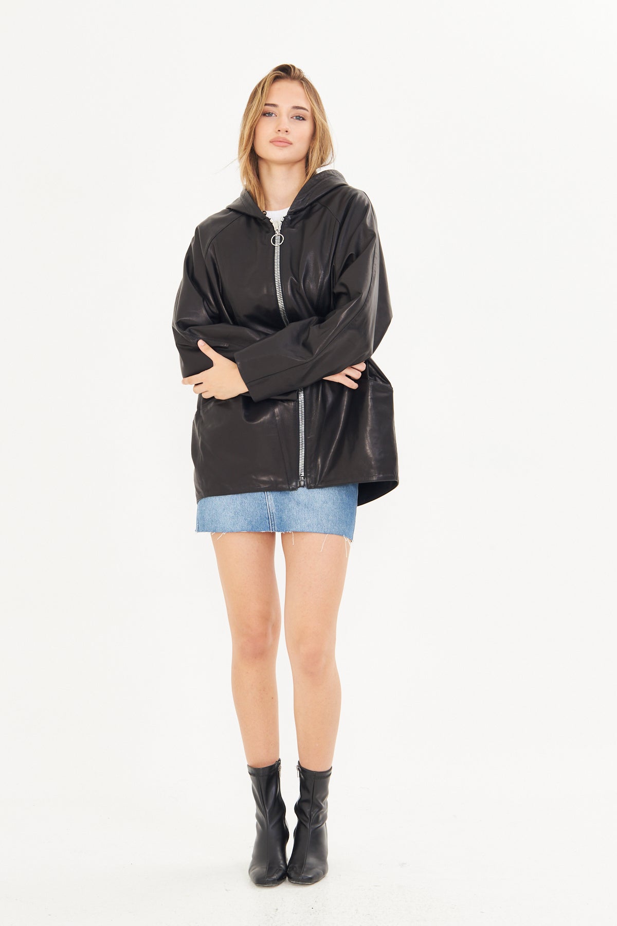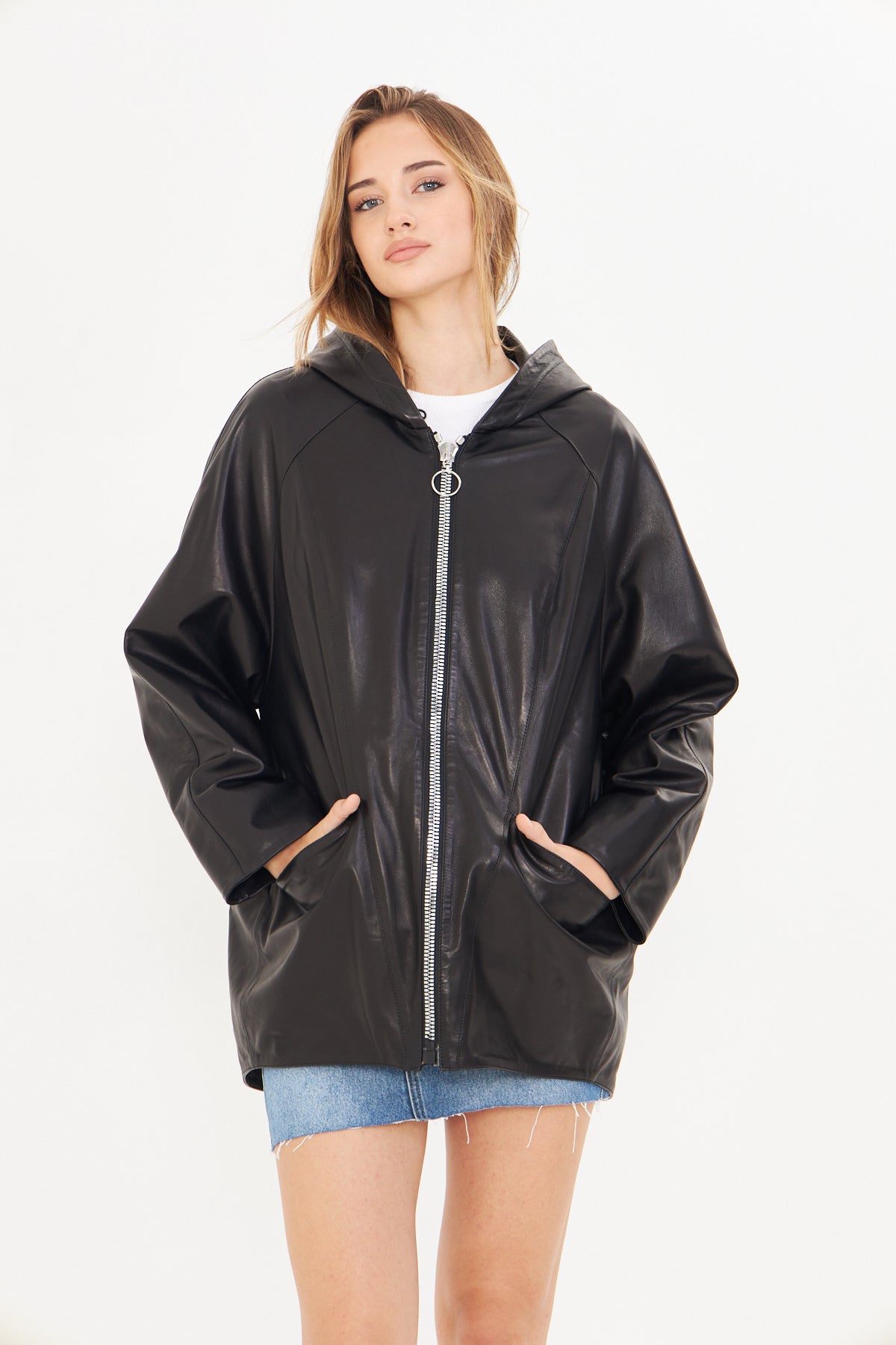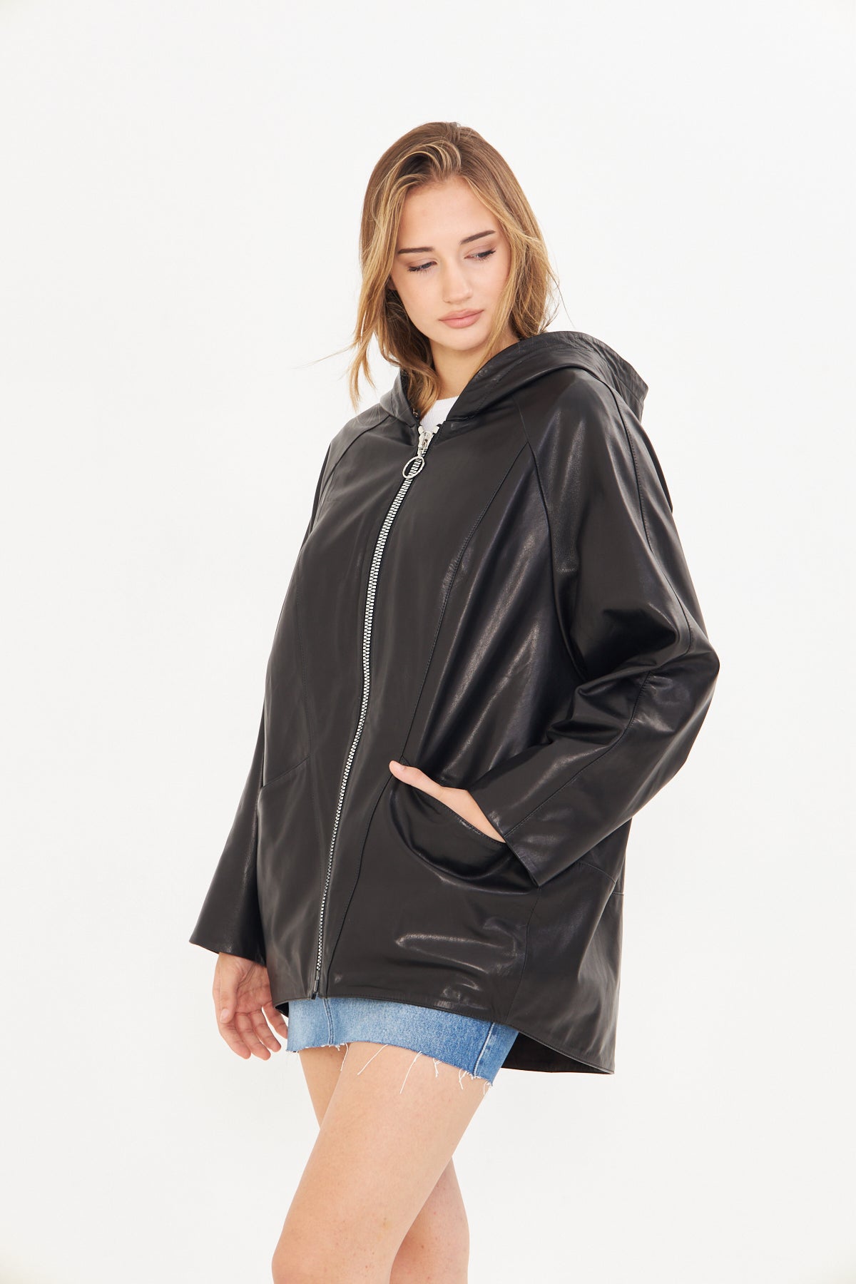 Kadın Kapüşonlu Deri Ceket